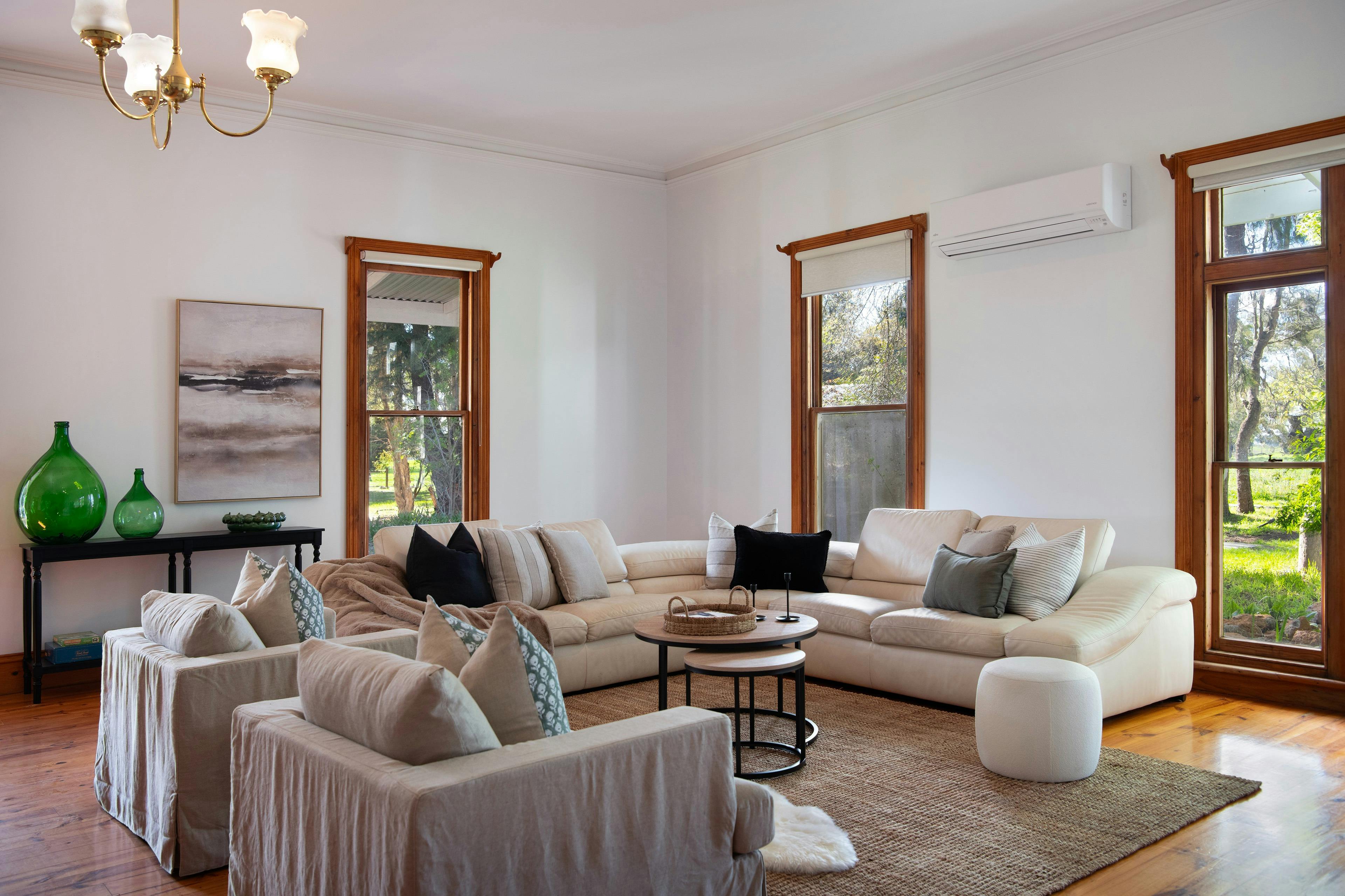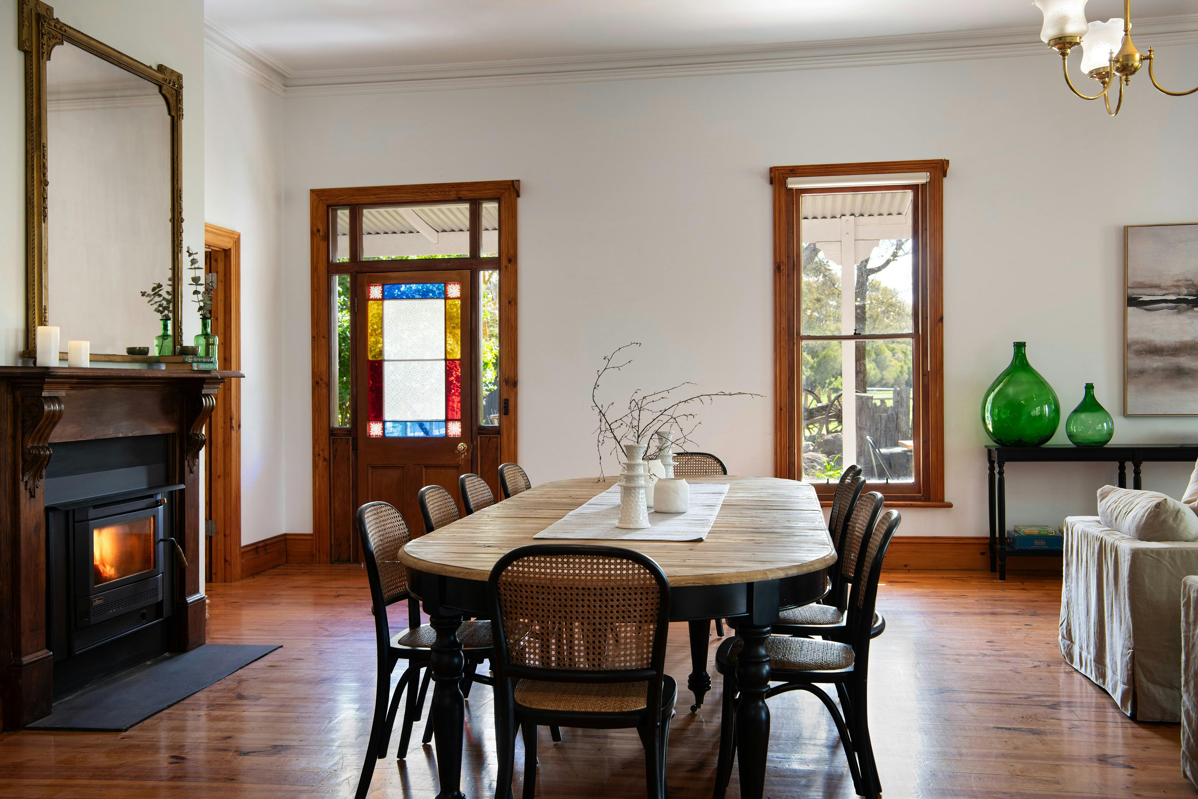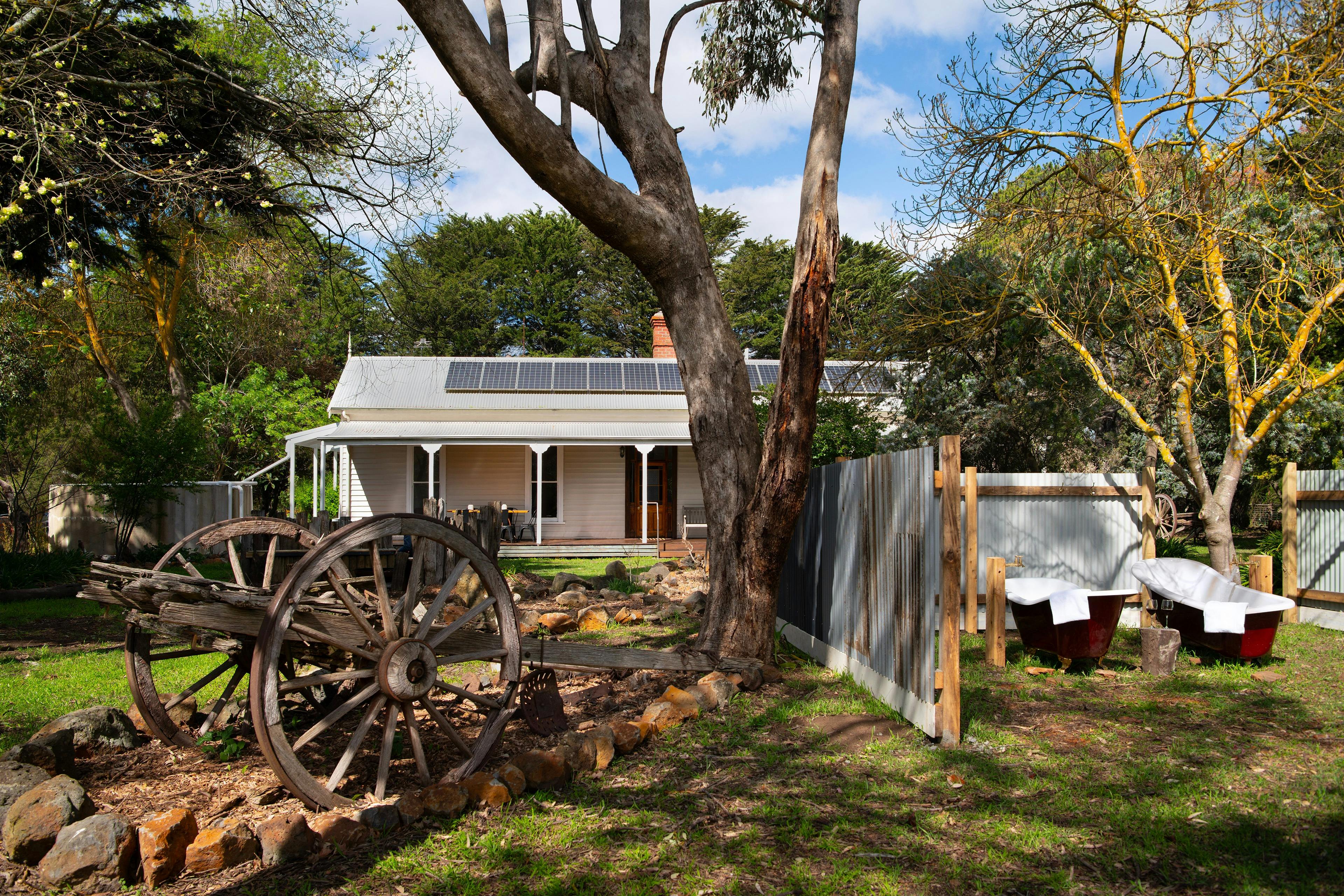 Morago Homestead is a four bedroom, three bathroom landmark property rich in history and character, set among majestic rolling hills and sweeping valleys near Werona and Kooroocheang. First settled in the mid 1800s, this elegant colonial style homestead now spans approximately 38 squares and sits proudly at the entrance to its 1800 acre farmland estate. Inside, the scale is impressive. A spacious lounge with a unique open fireplace and reverse cycle split system flows into an enormous family room a space that truly must be seen to be believed. The home offers five bedrooms (two rooms can have split beds) including a master with ensuite, plus two additional bathrooms, ensuring comfort for family and guests. A traditional central hallway enhances the sense of grandeur, while the kitchen retains its country character with a Raeburn wood stove (for heating only). There are three fireplaces and split systems in two bedrooms. Outdoors, the property continues to inspire. Two claw foot baths provide your own private farmland bathing options. The owners has cleverly designed this outdoor bathing option for guests to really unwind. The deck provides undercover dining for eight and there are countless options across the property for guests to enjoy the outdoors and some of the unique old world creations from yesteryear.