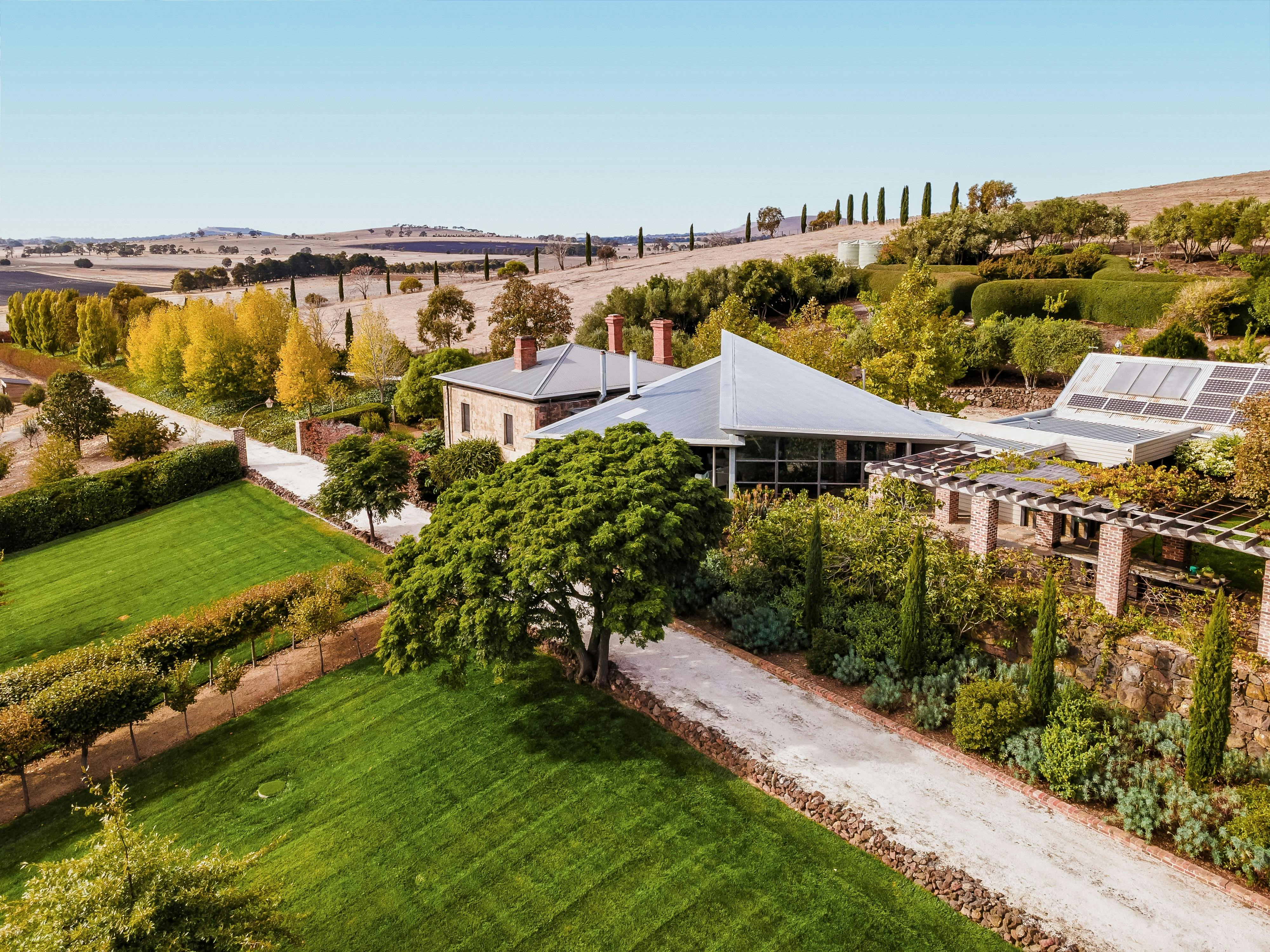 Step into the grandeur of Vale Hill House, rural Victorian Icon, a breathtaking home and spectacular garden that redefines luxury living in Victoria's Goldfields. The 1850s original homestead fuses effortlessly into a contemporary masterpiece, preserving its heritage soul while introducing bold architectural flair and panoramic views across the plains. The entertainer's kitchen features an Aga oven, two Miele ovens, dual dishwashers, and a gas cooktop. The principal suite offers views to Mt Kooroocheang, with a private balcony, ensuite, den, and study. Two generous guest bedrooms share a spa bathroom and lounge. The self-contained barn apartment has the fourth bedroom and includes a lounge, bathroom, and kitchenette. Outside, the estate unfolds into formal terraced gardens, two hectares of paddocks (home to alpacas and hand-raised sheep), and one of Victoria's largest edible domestic gardens. Sculptural and architectural elements blend classical and modern artistry. A standout feature is the luxurious heated pool with deck and sweeping panoramic views. With sweeping views across the plains and toward Mt Kooroocheang, the residence blends charm with bold architectural elegance. Inside, refined spaces styled by Stuart Rattle offer warmth and sophistication, but it's the gardens that truly steal the show. It's a place where every view feels like a painting, and every garden path leads to something magical.