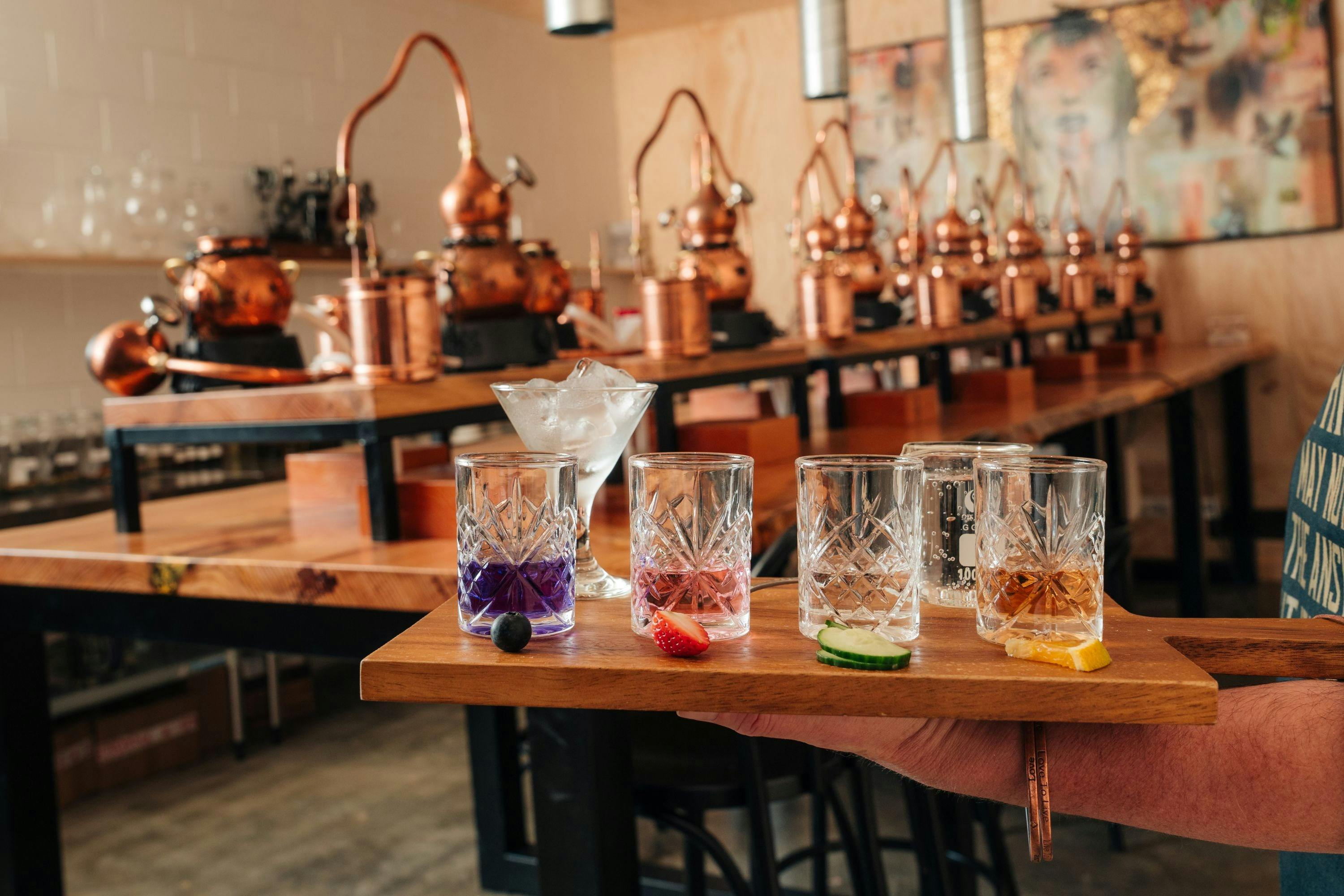 Masterclass room with gin flight presented