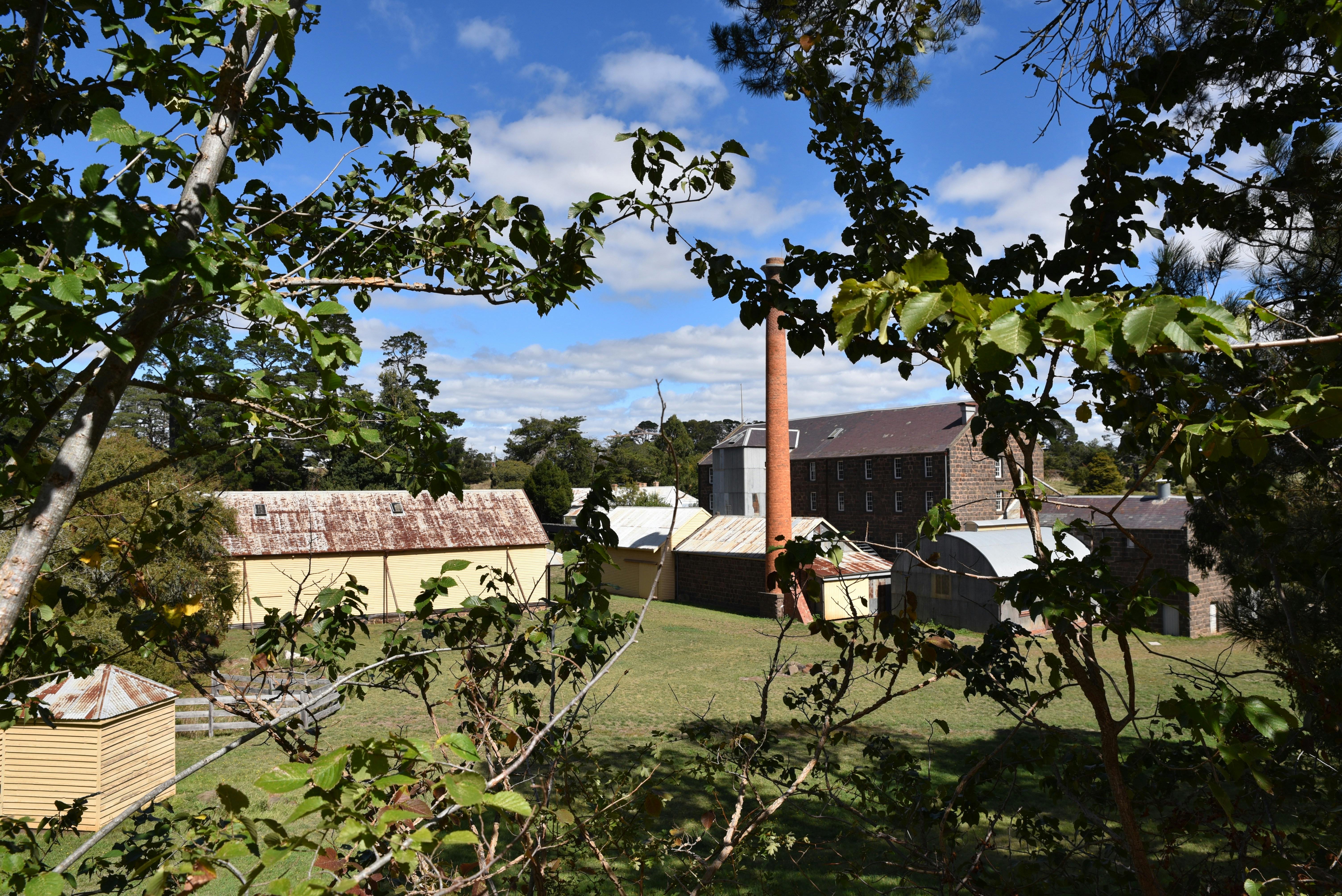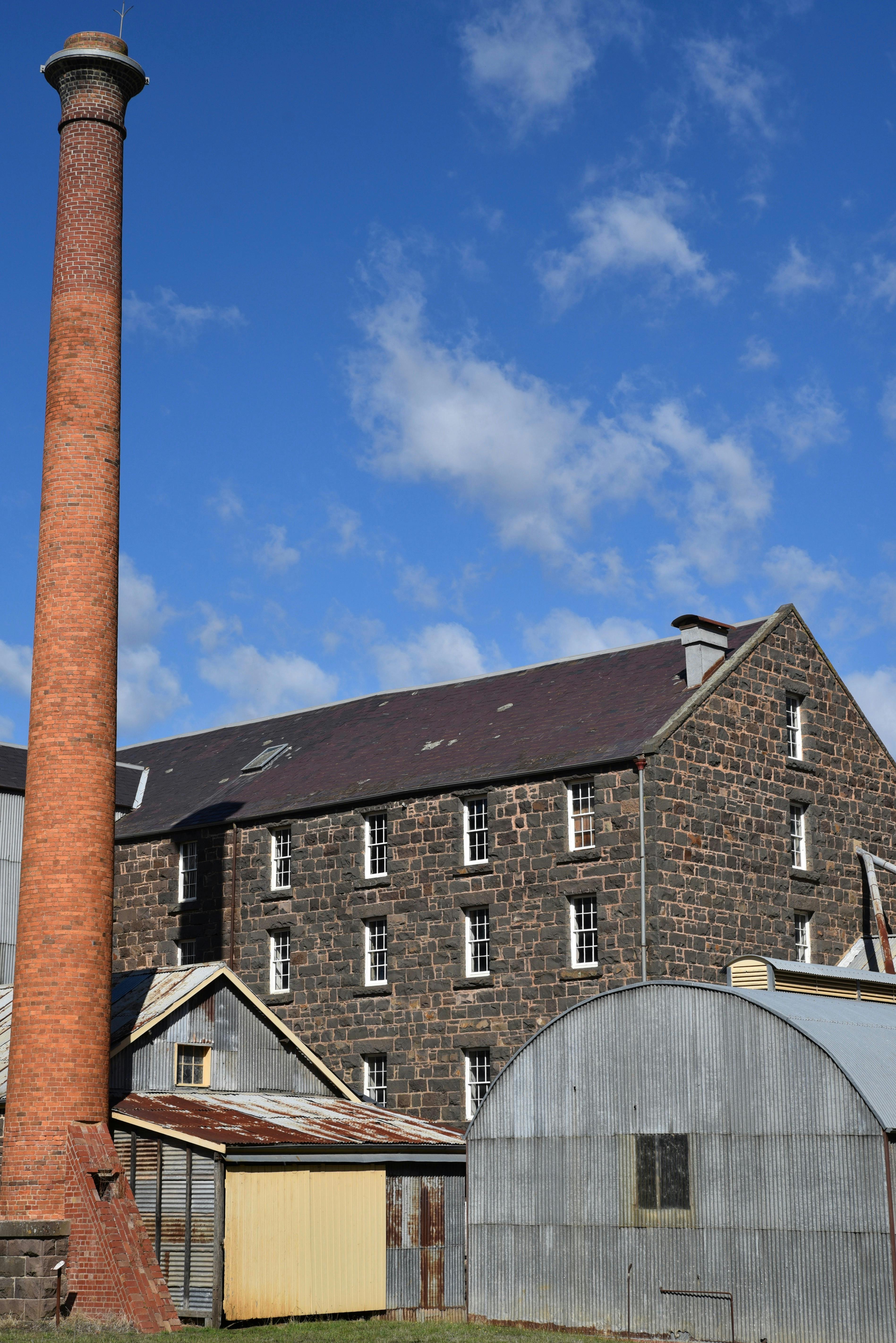 Anderson's Mill showing the oat mill, chimney and large weatherboard granary at the rear of the mill